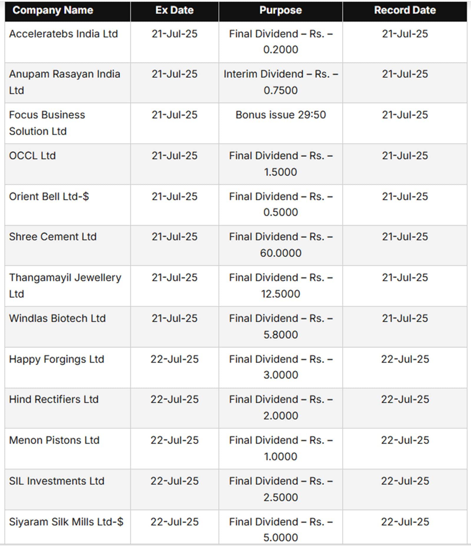 Next week, many companies are also going to show corporation action like dividend and bonus shares. (See chart)